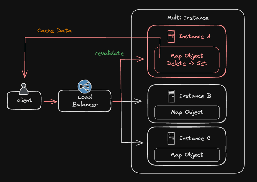 - On-demand Revalidation: 특정 인스턴스에서 원할 때 캐시를 purge 시켜 항상 새로운 데이터를 얻을 수 있다. 하지만 멀티 인스턴스 내에서 하나의 인스턴스 캐시만 purge 할 수 있기 때문에 다른 인스턴스에서 데이터 동기화가 되지 않는 문제가 있다.